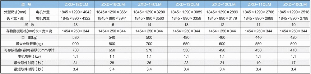 聯(lián)網(wǎng)上下電動(dòng)門(mén)自動(dòng)選層檔案柜主要技術(shù)參數(shù)(A4紙型)